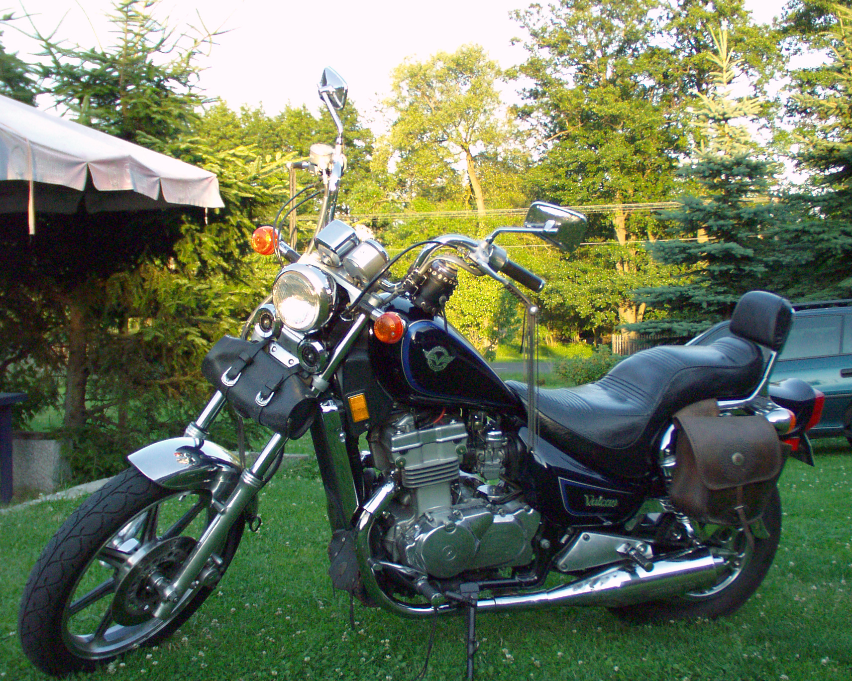 Motocykl jsem koupil v srpnu 2001 a vybíral jsem dlouho.Rozhodující kritéria byly celkem tři:cena do stotisíc,měl to být chopper a řetěz jako sekundár byla nejhorší varianta.Tenkrát připadaly v úvahu celkem tři stroje. 650tka Savage od Suzuki se svým jednoválcem,posezem nějakých 64cm nad zemí a řemenem.Konstrukčně velmi jednoduchá motorka ale vhodná spíš pro ženskou.Dále se nabízelo 535 Virago od Yamahy se vzduchovým véčkem a kardanem jenže ceny se pohybovaly mimo mé možnosti a tak padla volba na půllitrového Vulcana od Kawasaki.Byl to tak trochu exot mezi choppery hlavně kvůli svému motoru uspořadanému v řadě s šestrychlostní převodovkou a sekundárem řešeným stejně jako u Savage řemenem.Tou dobou používaly řemeny sériově vlastně tři značky,kromě dvou již zmíněných ještě Harley-Davidson.Řekl bych,že řemen a nezničitelný motor byly největší přednosti tohoto motocyklu a pro mě rozhodující vlastnosti.V době internetového temna sehnat jakékoliv informace o tomto stroji bylo téměř nemožné a motorek bylo jako šafránu.Většina majitelů GPZetek však shodně tvrdila že motor je opravdu držák a fakt nekecali.Řemen je kapitola sama pro sebe.
