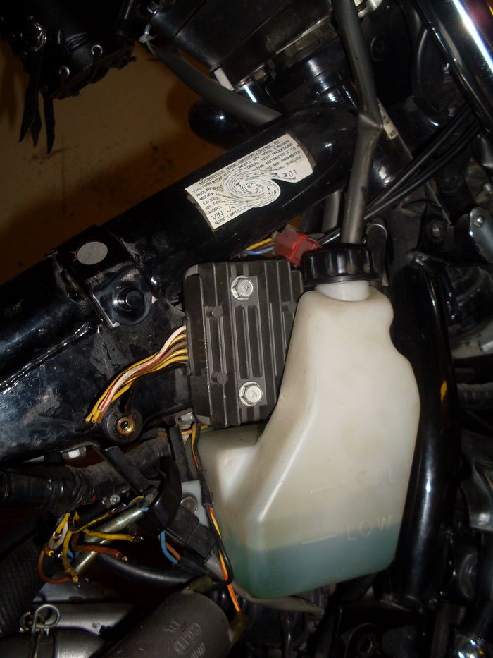 Na obrázku osazen původní regulátor ,částečné zakrytý expanzní nádržkou.