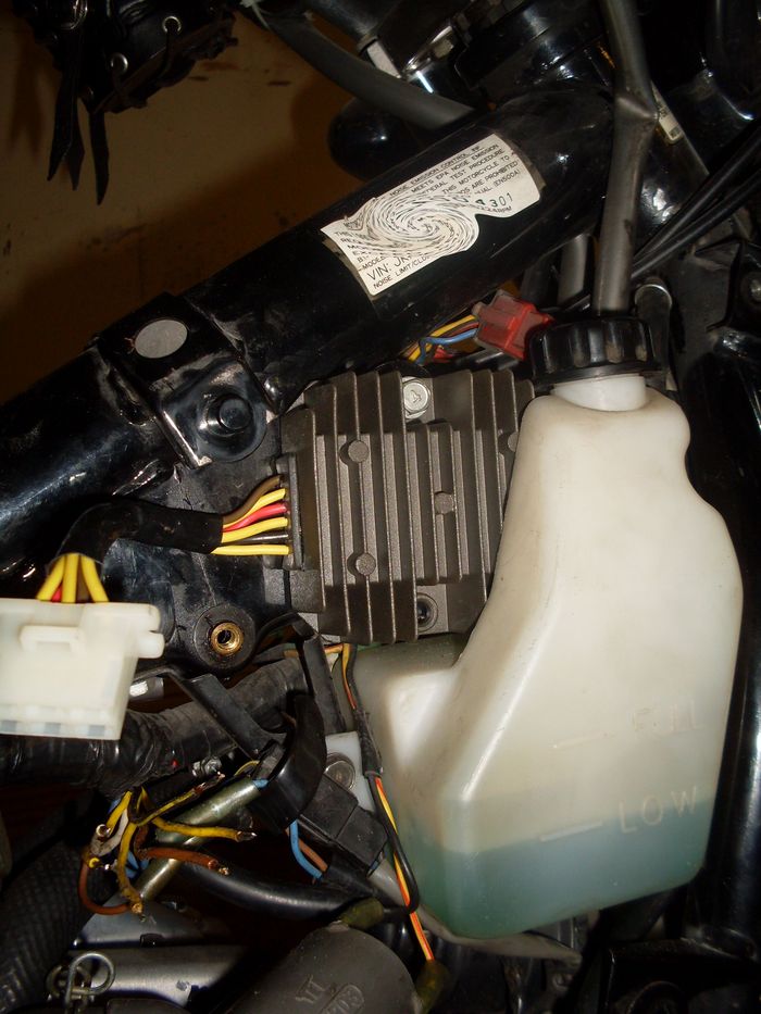 Regulátor je vyroben pro EN 450/454LTD a pasuje i na další tipy jejichž motor koncepčně vychází z tohoto motocyklu.Tedy i EN 500. Měl jsem obavu jestli se vejde na místo na rámu,protože je na první pohled větší (na obrázku vlevo nový regulátor,vpravo původní). Při montáži jsem zjistil že nepasuje rozteč montážních děr ale jeden šroub to podrží taky.Barevné značení drátů je shodné akorát místo bíločerveného je na regu červený.Po zapojení a nastartování naměřené hodnoty v pořádku,regulátor tedy funguje bezchybně. ORIENTAČNÍ MĚŘENÍ ukázalo kolem 14,5 V při zátěži na volnoběh.Při zvíšených otáčkách klesalo na 14,2 V.
